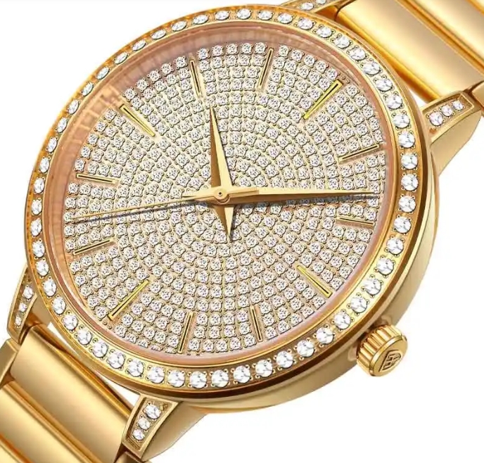 钻石腕表目前在腕表行业里面是顶配的手表,一般就是指镶钻的手表,比较好的镶钻手表一般有使用奥地利的施华洛世奇水晶钻和天然钻石两种,一般来说千元级别的手表都是各种水晶之类的,只有万元级别的手表的镶钻才有可能是天然真钻,手表也就越贵。